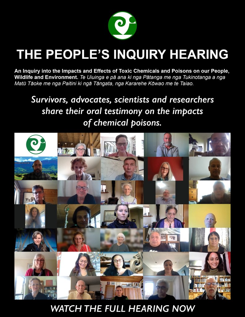 Topics covered: History of Pesticide in Conservation/Wildlife, Cocktail of Chemicals Whareroa Marae, Case Against 1080, Failures of EPA, Glyphosate, Impact on Ecological Life, Fluoride & Glyphosate, People’s Inquiry, Climate, Human Rights, Nature Rights, Historical Patterns of Harm.